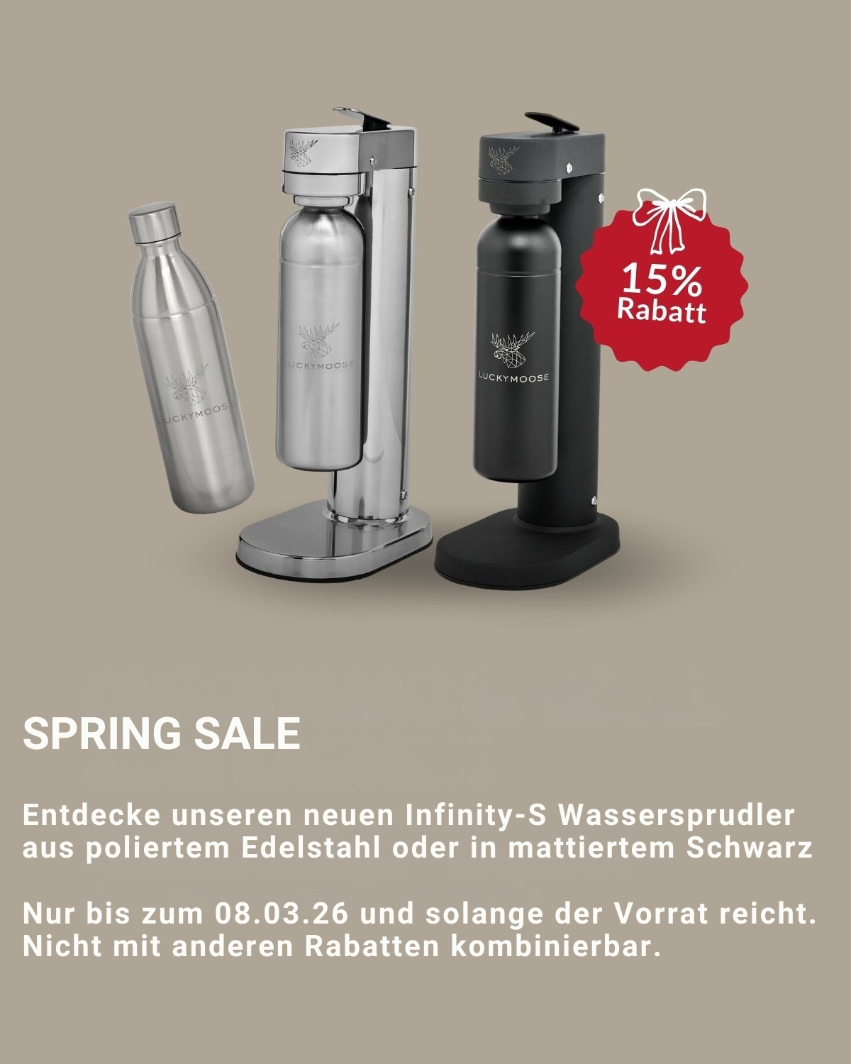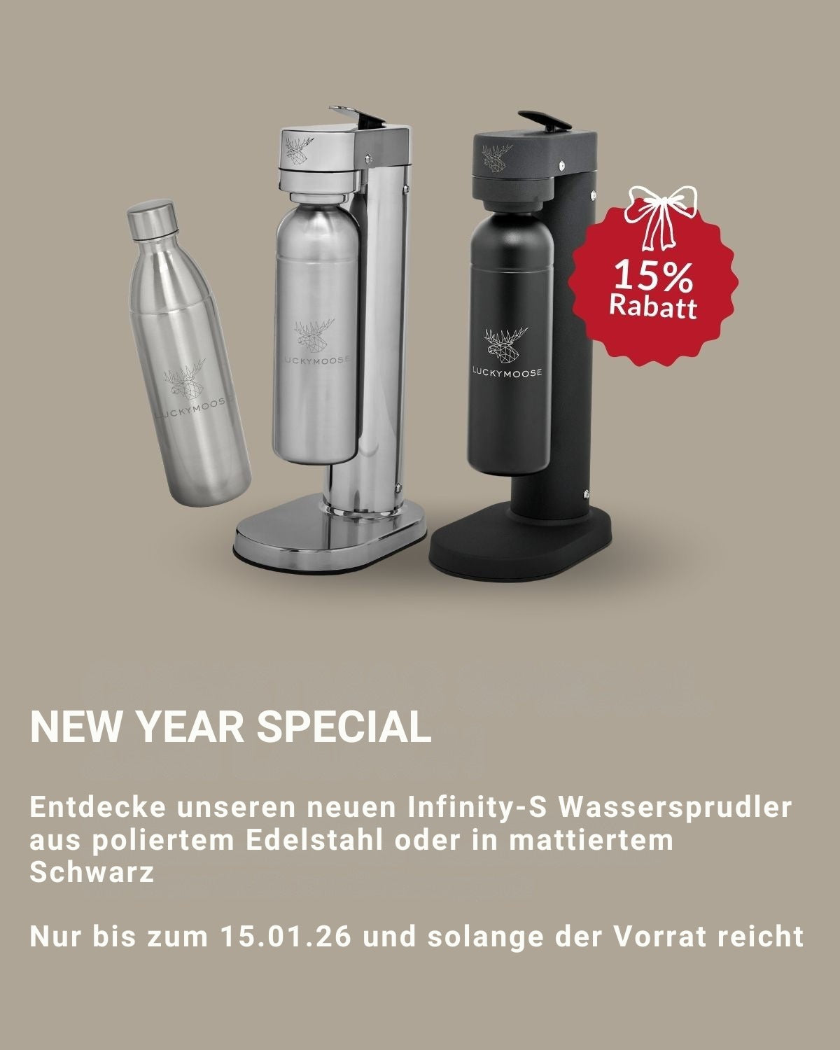 Mit dem Luckymoose Wassersprudler bringst du stilvolle Frische in deinen Alltag und verwandelst jedes Glas Wasser in ein besonderes Erlebnis. Ob in der Küche oder unterwegs mit den langlebigen Infinity Edelstahlflaschen – genieße den Hauch von Luxus, ganz ohne Kompromisse.