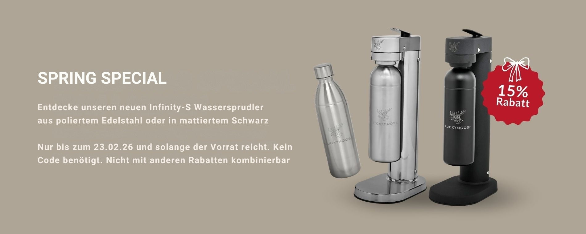 Natürlich passt er perfekt zu all unseren Luckymoose Infinity Flaschen, damit ihr eure Sprudelmomente sofort genießen könnt.