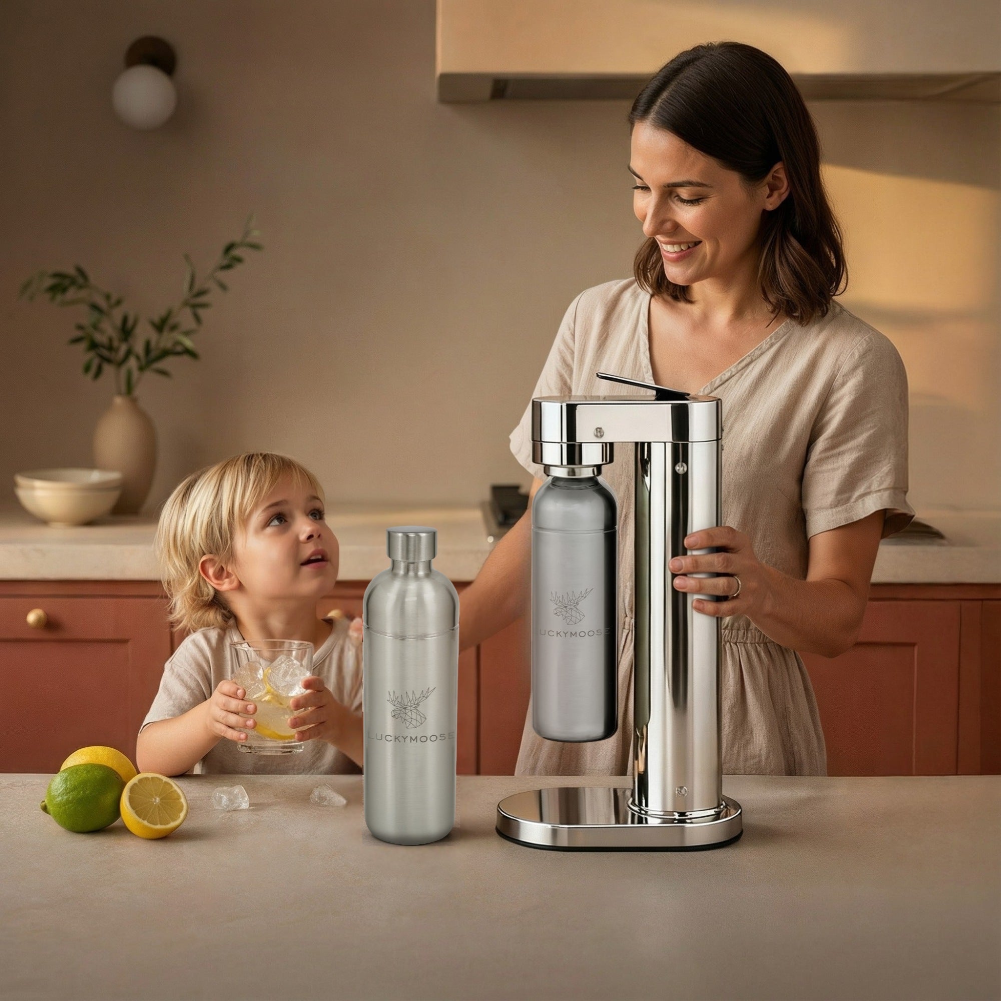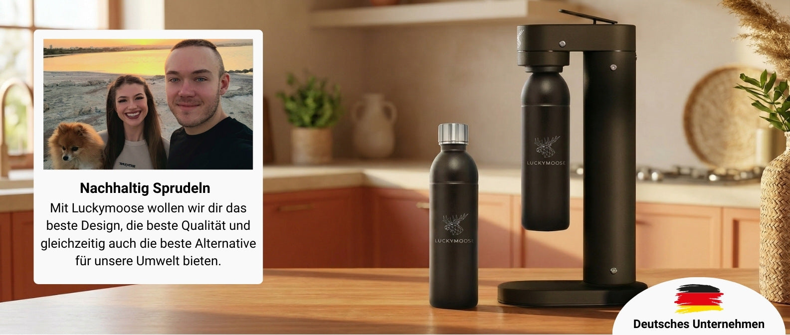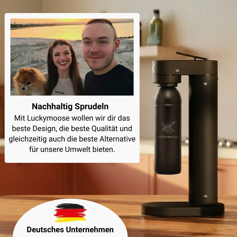 Natürlich passt er perfekt zu all unseren Luckymoose Flaschen, damit ihr eure Sprudelmomente sofort genießen könnt.