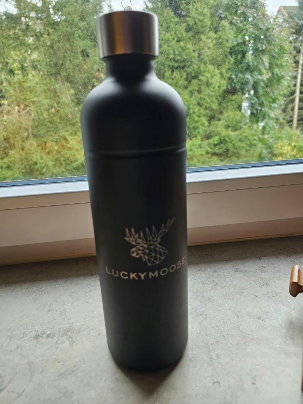 Die Luckymoose Edelstahlflasche vereint zeitloses Design mit purer Frische und wird zu deinem ständigen Begleiter. Ob zu Hause, im Büro oder unterwegs – genieße prickelndes Wasser in einer stilvollen Flasche, die Nachhaltigkeit und Eleganz perfekt verbindet.