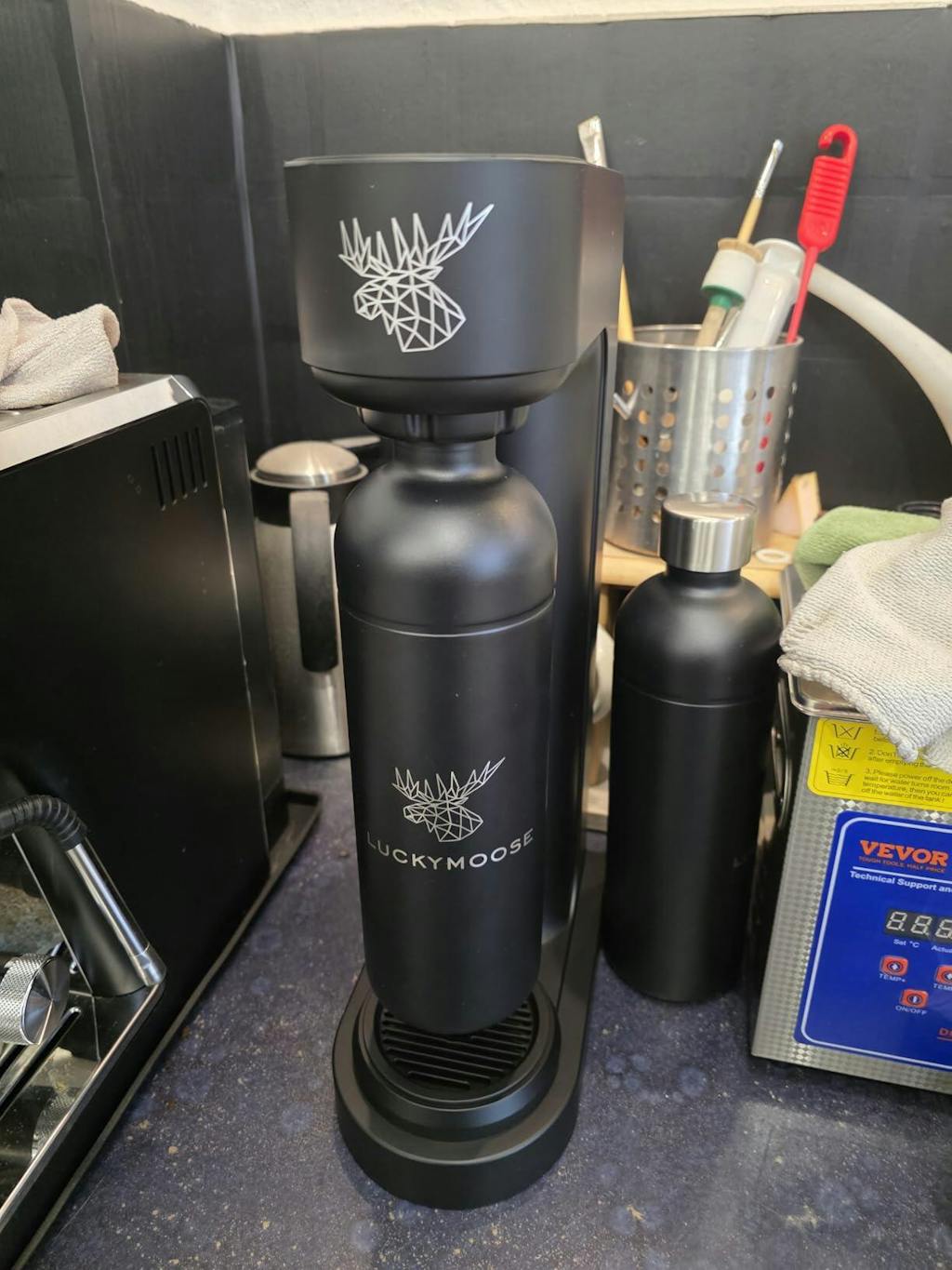 Der Luckymoose Wassersprudler kombiniert modernes Design mit Umweltbewusstsein und bringt prickelnde Frische direkt in dein Zuhause. Mit einer langlebigen Edelstahlflasche und automatischer CO₂-Stopp-Funktion genießt du jederzeit sprudelndes Wasser – ganz ohne Plastik, dafür mit Stil und Nachhaltigkeit.